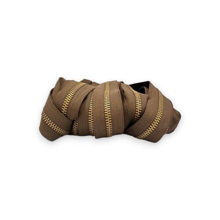 Zip broušený kovový 5 mm hnědá stuha
