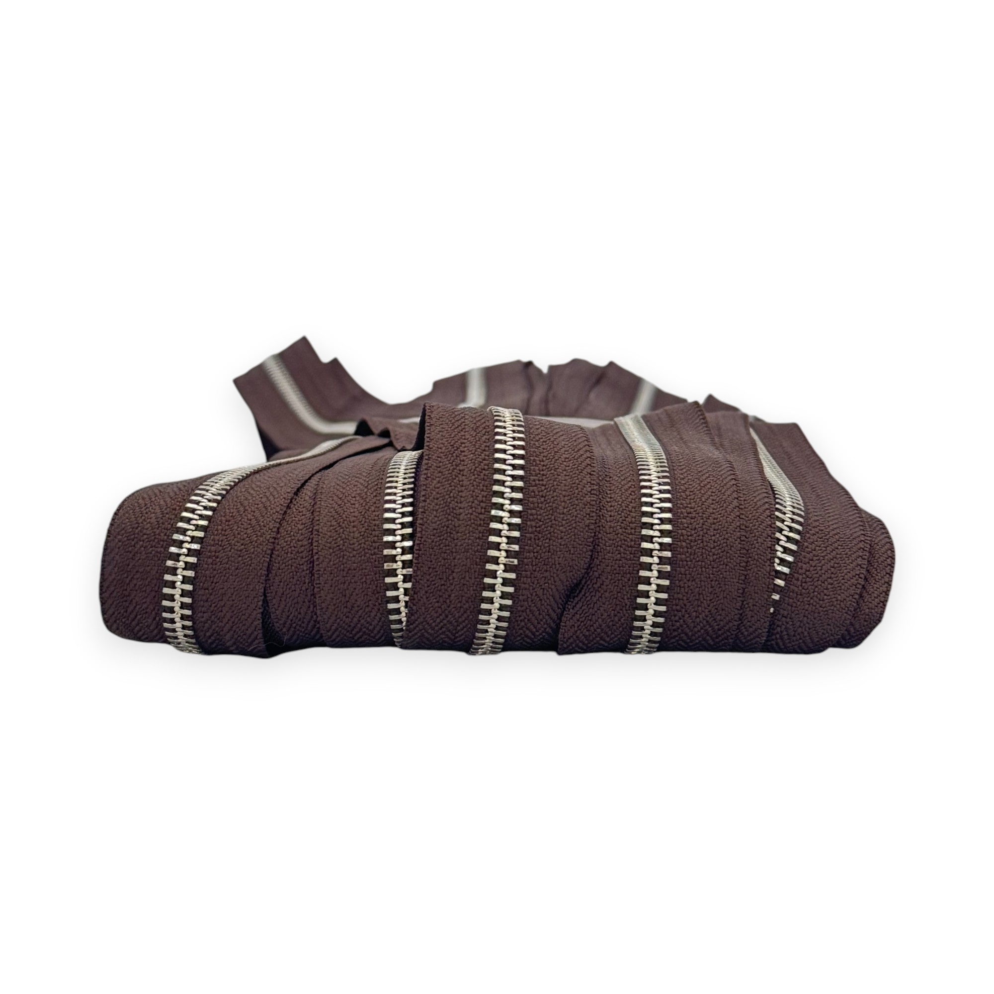 Zip kovový 5 mm tmavě hnědý/nikl spirála