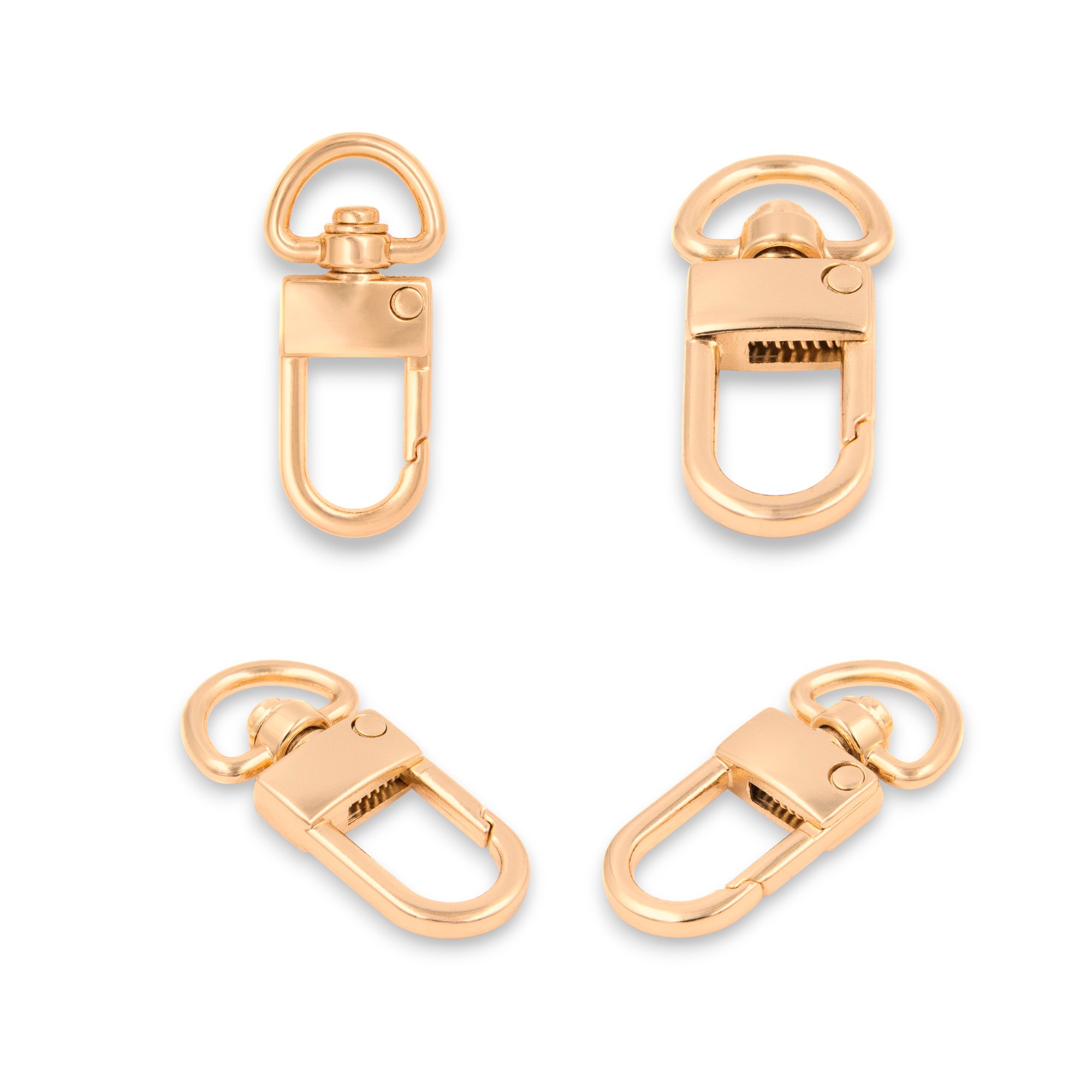 Zlatá kovová karabinka otočná s průvlekem 6 až 12 mm